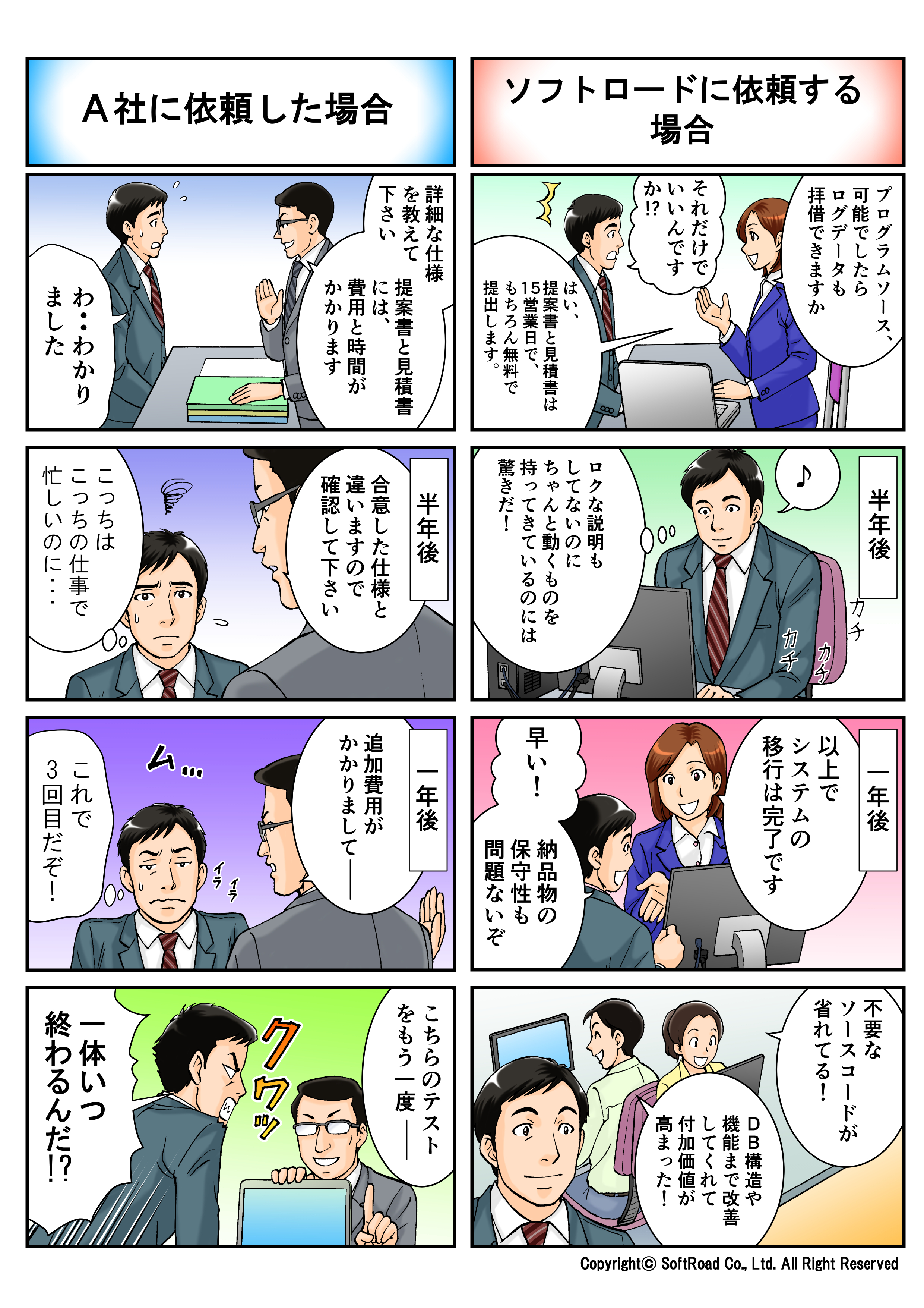 マンガファクトリー製作物 » 株式会社 ソフトロード 株式会社 ソフトロード 投稿日 2020/07/28(火曜日) 番号 F01711701 作業者 冨田 かおり 登録カテゴリー 4コマ漫画サービス紹介